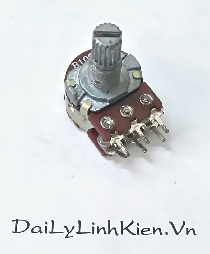 Chiết áp kép 100K Ohm hay còn gọi là chiết áp volume, cấu tạo và nguyên lý hoạt động tương tụ biến trở nhưng được thiết kế thêm cần chỉnh để người sử dụng có thể dễ dàng điều chỉnh.