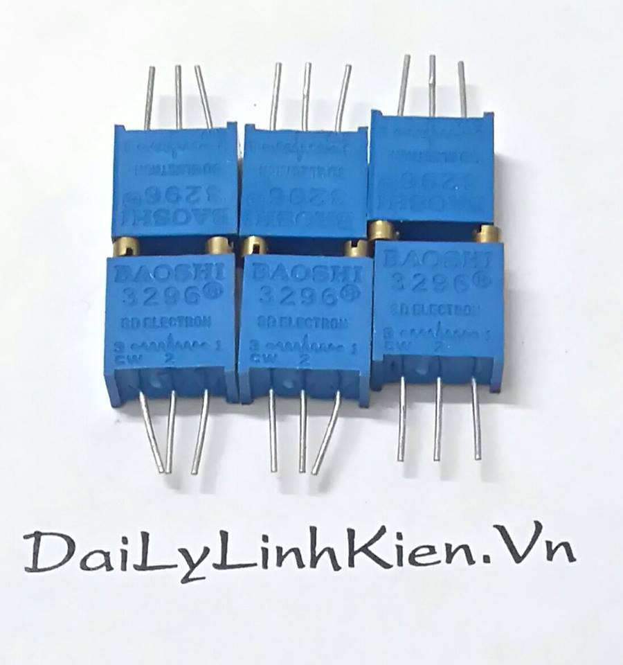 Biến trở xanh vuông 1K Ohm 3296 là điện trở có giá trị điện trở thuần có thể thay đổi được, giá trị điện trở thay đổi tuyến tính. Biến trở vuông 100K Ohm của hãng Bourns sản xuất theo mô hình 3296 có 3 chân, kích thước 1x1cm.