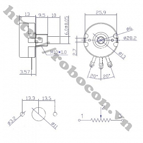 - Chiết áp đơn 47K ohm 2W sản xuất theo công nghệ Carbon film và kim loại. Đầu điều chỉnh của chiết áp đơn 47K Ohm được thiết kế với núm xoay khứa cạnh với đường kính trục 6mm, chiều dài trục 10mm dễ dàng cho việc điều chỉnh. Giá trị của điện trở của chiết áp đơn 47K Ohm được điều chỉnh tuyến tính bằng cách xoay đầu điều chỉnh.