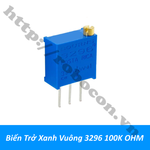 - Biến trở xanh vuông 100 Ohm 101 3296 là điện trở có giá trị điện trở thuần có thể thay đổi được, giá trị điện trở thay đổi tuyến tính. Biến trở vuông 100 Ohm của hãng Bourns sản xuất theo mô hình 3296 có 3 chân, kích thước 1x1cm.