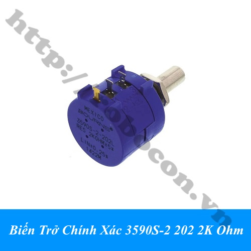 Biến Trở Chính Xác 3590S-2-202L là loại Potentiometer biến trở chính xác nhiều vòng 2K ohm có thể sử dụng trong các mạch điện tử cần độ chính xác cao, điều khiển tốc độ biến tần,…