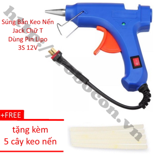 CBM127 Combo Súng Bắn Keo Nến Jack Chữ T Dùng Pin Lipo 3S 12V Tặng Kèm 5 Cây Keo Nến 7mm