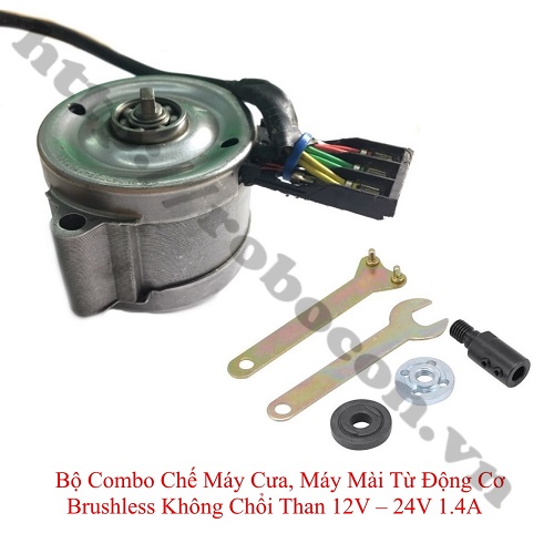 - CBM145 Bộ combo chế máy cưa, máy mài từ động cơ brushless không chổi than 12v – 24v 1.4a hay động cơ BLDC chế máy mài, cưa công suất lớn là động cơ điện một chiều không chổi than ba pha gắn với đầu chuyển đổi trục 8mm ra đầu kẹp lưỡi cưa, lưỡi cắt, lưỡi mài.