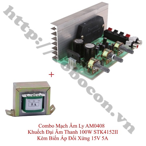 CBM151 Combo Mạch Âm Ly AM0408 Khuếch Đại Âm Thanh 100W STK4152II Kèm Biến Áp Đối Xứng 15V 5A