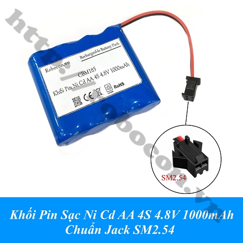 CBM185 Khối Pin Sạc Ni Cd AA 4S 4.8V 1500mAh Chuẩn Jack SM2.54