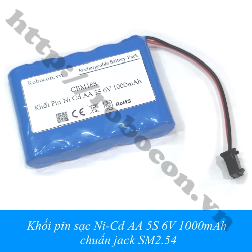 CBM188 Khối pin sạc Ni-Cd AA 5S 6V 1500mAh chuẩn jack SM2.54