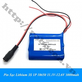 - Pin sạc lithium 3S 1P 18650 11.1V-12.6V 3000mah hay ắc quy lithium, ắc quy mini, được sản xuất từ pin 18650 đóng thành pack pin 3s 12V đã bao gồm mạch sạc và bảo vệ pin để bảo vệ pin trong quá trình sạc xả, với kích thước nhỏ gọn dễ sử dụng và mang theo sử dụng như 1 nguồn điện di động.