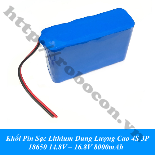 Pin Sạc Lithium 4S 3P 18650 14.8V-16.8V 8000mah dung lượng cao hay ắc quy lithium, ắc quy mini, được sản xuất từ pin 18650 đóng thành pack 12 cell pin 4S 3P 16.8V 8AH dòng xả max 20A đã bao gồm mạch sạc và bảo vệ pin để bảo vệ pin trong quá trình sạc xả, với kích thước nhỏ gọn dễ sử dụng và mang theo sử dụng như 1 nguồn điện di động.