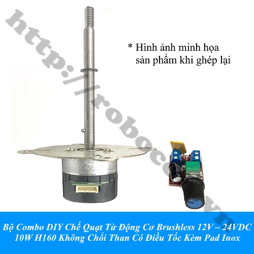 Bộ Combo DIY Chế Quạt Từ Động Cơ Brushless 12V – 24VDC 10W H160 Không Chổi Than Có Điều Tốc Kèm Pad Inox