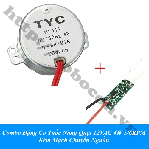 CBM211 Combo Động Cơ Tuốc Năng Quạt 12VAC 4W 5/6RPM Kèm Mạch Chuyển Nguồn