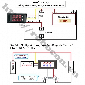 Đồng Hồ Đo Dòng Đo Áp 0-100VDC/50A Có Trở Shunt Đi Kèm