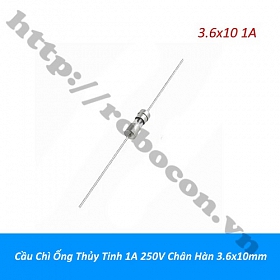 - Cầu chì ống thủy tinh 1A có kích thước nhỏ 3.6x10mm, điện áp tối đa lên tới 250V