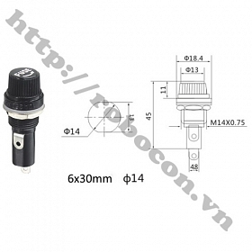 - Vỏ cầu chì 6x30mm thích hợp cho cầu chì ống thủy tinh và ống sứ kích thước 6x30mm, có tác dụng bảo vệ ống cầu chì, giá đỡ cầu chì kết nối cầu chì trong các thiết bị điện chuyên dụng.