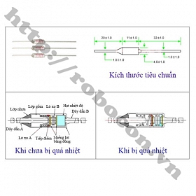 Khi nhiệt độ đạt ngưỡng giới hạn sẽ làm lớp hạt dẫn nhiệt độ bị chảy, lò xo B bị giãn làm 2 tiểm điểm không được ép tiếp xúc nhau. Dòng điện chạy qua 2 dây dẫn bị ngắt mạch.