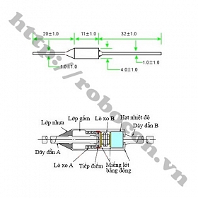 Kích Thước Cầu Chì Nhiệt Độ RY-135 TF135 135 Độ 10A 250V