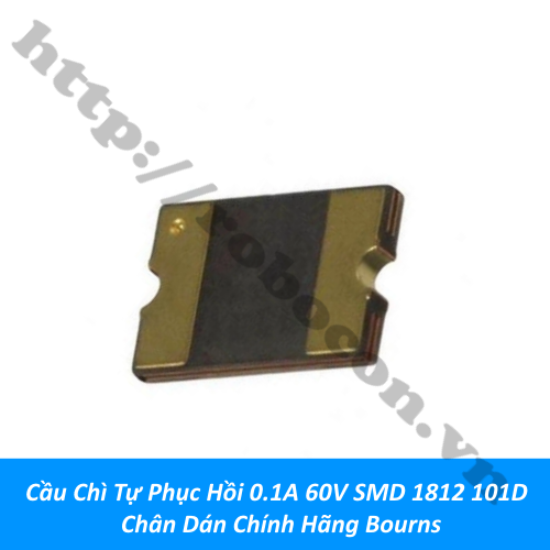 - Cầu chì tự phục hồi 0.1A 60V SMD 1812 101D chân dán chính hãng Bourns được sử dụng để bảo vệ mạch điện bằng đơn giản hoạt động nguyên là khi có dòng điện mở rộng biến đi sẽ làm dây bên trong nóng chảy làm đứt mạch điện.