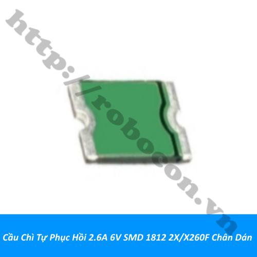 - Cầu chì tự phục hồi 2.6A 6V SMD 1812 2X/X260F chân dán được sử dụng để bảo vệ mạch điện bằng đơn giản hoạt động nguyên là khi có dòng điện mở rộng biến đi sẽ làm dây bên trong nóng chảy làm đứt mạch điện.