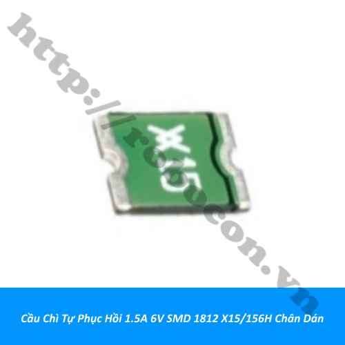 - Cầu chì tự phục hồi 1.5A 6V SMD 1812 X15/156H chân dán được sử dụng để bảo vệ mạch điện bằng đơn giản hoạt động nguyên là khi có dòng điện mở rộng biến đi sẽ làm dây bên trong nóng chảy làm đứt mạch điện.