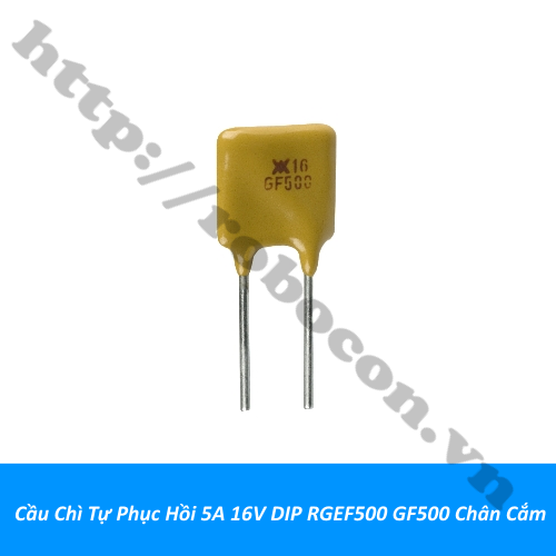 - Cầu chì tự phục hồi 5A 16V DIP RGEF500 GF500 chân cắm được sử dụng để bảo vệ mạch điện bằng đơn giản hoạt động nguyên là khi có dòng điện mở rộng biến đi sẽ làm dây bên trong nóng chảy làm đứt mạch điện.