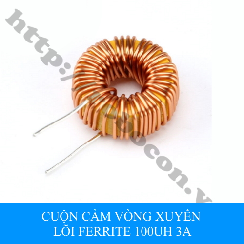 - Cuộn cảm xuyến 100uH 3A hay còn gọi la cuộn lọc xuyến là một loại linh kiện điện tử thụ động tạo từ một dây dẫn điện với vài vòng quấn, sinh ra từ trường khi có dòng điện chạy qua.