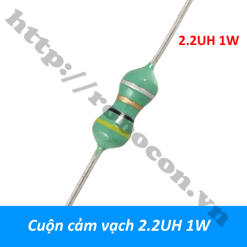 - Cuộn cảm vạch 2.2UH 2R2 1W là linh kiện điện tử thụ động. Cuộn cảm vòng màu 2.2UH 1W có cấu trúc tương tự như điện trở. Quy định màu và cách đọc màu đều tương tự như điện trở.