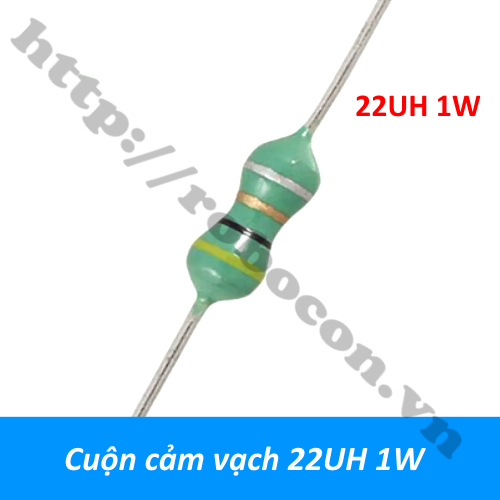 - Cuộn cảm vạch 22UH 1W là linh kiện điện tử thụ động. Cuộn cảm vòng màu 22UH 1W có cấu trúc tương tự như điện trở. Quy định màu và cách đọc màu đều tương tự như điện trở.