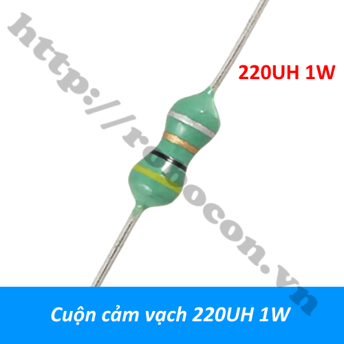 - Cuộn cảm vạch 220UH 1W là linh kiện điện tử thụ động. Cuộn cảm vòng màu 220UH 1W có cấu trúc tương tự như điện trở. Quy định màu và cách đọc màu đều tương tự như điện trở.