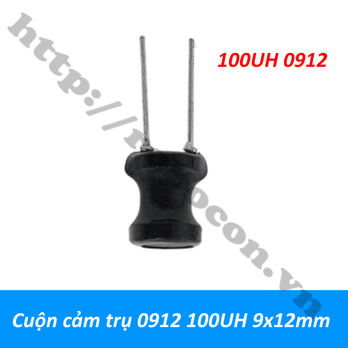 - Cuộn cảm trụ 0912 100UH 9x12mm là ống dây hình trụ thường sử dụng dây dẫn để cuốn thành cuộn cảm được chế tạo đặc biệt và bảo vệ bên ngoài bằng một ống co sẽ tạo thành cuộn cảm ống dây