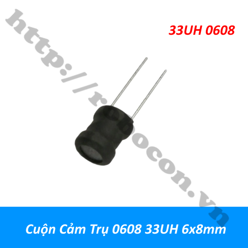 - Cuộn cảm trụ 0608 33UH 6x8mm là ống dây hình trụ thường sử dụng dây dẫn để quấn thành cuộn cảm được chế tạo đặc biệt và bảo vệ bên ngoài bằng một ống co sẽ tạo thành cuộn cảm ống dây.
