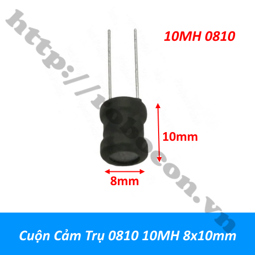 - Cuộn cảm trụ 0810 10mh 8x10mm là ống dây hình trụ thường sử dụng dây dẫn để cuốn thành cuộn cảm được chế tạo đặc biệt và bảo vệ bên ngoài bằng một ống co sẽ tạo thành cuộn cảm ống dây