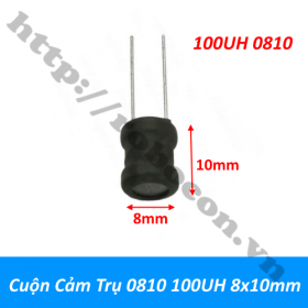 - Cuộn cảm trụ 0810 100UH 8x10mm là ống dây hình trụ thường sử dụng dây dẫn để cuốn thành cuộn cảm được chế tạo đặc biệt và bảo vệ bên ngoài bằng một ống co sẽ tạo thành cuộn cảm ống dây