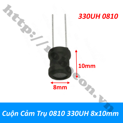 - Cuộn cảm trụ 0810 330UH 8x10mm là ống dây hình trụ thường sử dụng dây dẫn để cuốn thành cuộn cảm được chế tạo đặc biệt và bảo vệ bên ngoài bằng một ống co sẽ tạo thành cuộn cảm ống dây