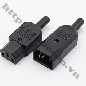Đầu Jack Nối Nguồn AC 3 Chân Loại Đực Cái chịu được dòng điện 250V, cường độ dòng điện 10A.