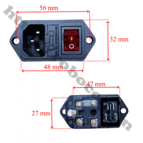CO218 Jack Nguồn AC09 3 Chân 220V Có Công Tắc, Có Khe Cắm Cầu Chì