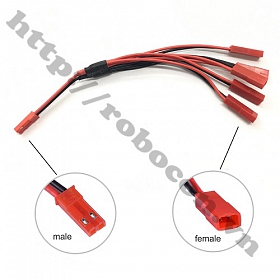 CO231 Dây chia JST-2P 1 đực ra 5 cái sạc cho nhiều loại pin gồm 1 đầu JST đực ra 5 đầu JST cái, dây được làm bằng silicone chịu nhiệt, dây thường được sử dụng làm dây nguồn PIN, dây thay thế cho dây PIN JST …