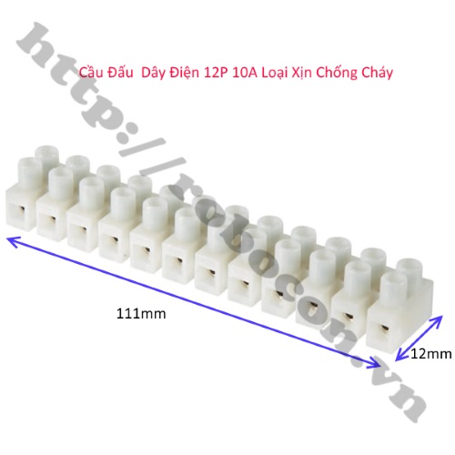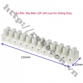 - Cầu đấu dây điện 12P 10A hay domino nối dây điện 12P chống cháy là một trong những terminal sử dụng để đấu nối các đầu dây điện nhanh chóng và an toàn.