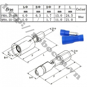 - Đầu cos bắp chuối MDP/FRD 1.25-156 xanh dương với màu sắc bắt mắt, dễ dàng phân biệt giúp kết nối, tăng khả năng dẫn điện và hạn chế tỏa nhiệt, đánh hồ quang, cháy chậm, hao mòn điện và thiết bị. Sản phẩm gọn nhẹ, dễ dàng sử dụng.