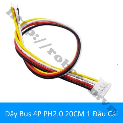 - Dây bus 4P PH2.0mm 20cm 1 đầu cái hay còn gọi là dây connector dùng kết nối header trên mạch. Dây bus 2.0mm thường được sử dụng trong các mạch điện tử cắm bộ test, 1 sợi dây nối có chiều dài 20cm 4 đầu cái (đầu đơn).