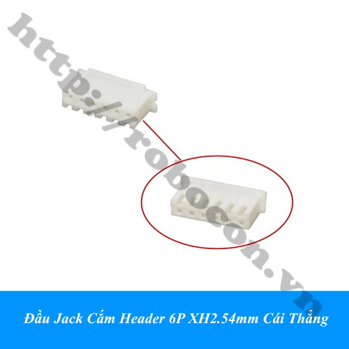 - Jack cắm header 6P XH2.54mm cái thẳng là đầu kết nối đực được hàn trong mạch để kết nối với dây connector cái, có tác dụng kết nối các mạch điện tử, hoặc các phần tử trong mạch điện, dùng làm cọc nguồn trong các mạch điện tử.