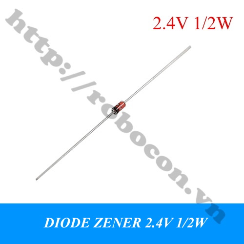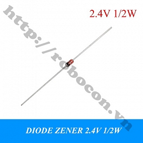 - Diode 2.4V 1/2W có điện áp ngược là 2.4V. Điốt zener công suất 1/2W được dùng để cấp điện áp mốc (ổn áp) hoặc hạn chế mức điện áp cho mạch điện.