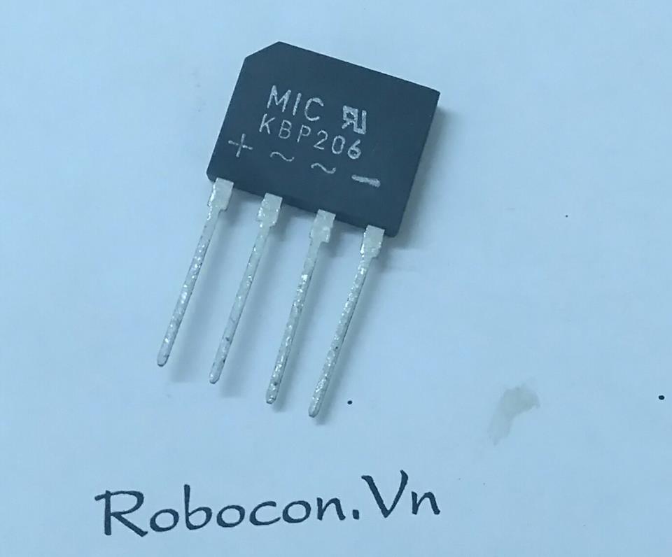 Diode cầu KBP206 có thể chịu được điện áp ngược cực đại lên tới 600V, dòng điện thuận cực đại qua diode là 2A.
