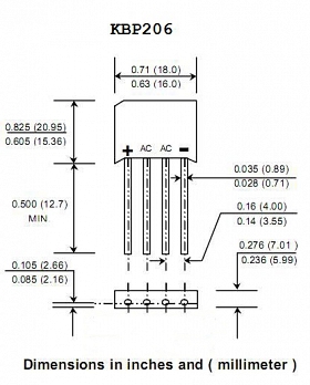 Diode cầu KBP206 là diode chỉnh lưu cầu, có cấu tạo gồm 4 diode được đóng gói trong một gói duy nhất, gồm 4 chân.