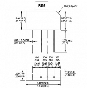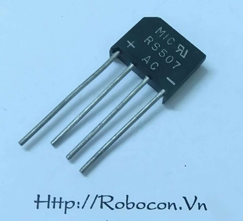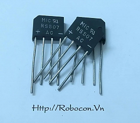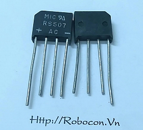 Diode cầu RS507 có thể chịu được điện áp ngược cực đại lên tới 1000V, dòng điện thuận cực đại qua diode là 5A.