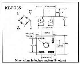 Diode cầu KBPC3510 là diode chỉnh lưu cầu dòng điện cao, dòng thuận cực đại lên tới 35A, có cấu tạo gồm 4 diode được đóng gói trong một gói duy nhất, gồm 4 chân.