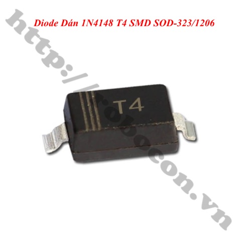 - Diode dán 1N4148 T4 SMD SOD-323/1206 là một diode tách sóng phổ biến thường được sử dụng trong các adapter AC cho các thiết bị gia dụng thông thường. Diode 1N4148 chịu được điện áp tối đa lên đến 75V. Dòng điện cực đại qua mỗi diode 1N4148 là 450mA, nếu dòng cao hơn sẽ gây nóng và cháy diode.