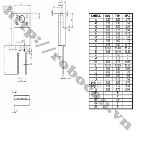 Sơ đồ Đi ốt, Diode Schottky MBRF20200CT 20A 200V TO220F 3 Chân Cắm