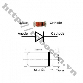 - Đi ốt chỉnh lưu 4148 dán kích thước nhỏ có vỏ bằng thuỷ tinh và còn gọi là diode tiếp điểm vì mặt tiếp xúc giữa hai chất bán dẫn P – N tại một điểm để tránh điện dung ký sinh, diode tách sóng thường dùng trong các mạch cao tần dùng để tách sóng tín hiệu