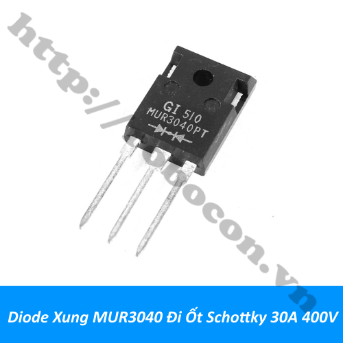 - Diode xung MUR3040 đi ốt schottky 30A 400V hay diode kép cũng hoạt động trong vùng nghịch và có một điện dung nhỏ hơn điện dung của diode bán dẫn. Đặc tính này hữu dụng trong việc đóng, mở mạch điện nhanh, hữu dụng trong những bộ phận RF như bộ trộn (mixers) và bộ dò (detectors).