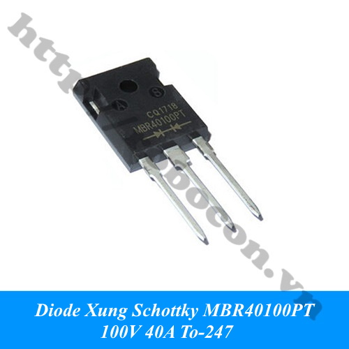 - Diode kép MBR40100PT 40A 100V là loại diode xung, diode kép, diode xung, xung kép họ Schottky đáp ứng nhanh với cấu hình 2 diode chung Cathode. Dùng rộng rãi trong các ứng dụng mạch nguồn xung