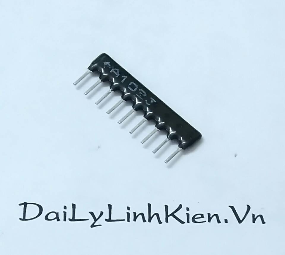 Điện trở băng 1K Ohm hay điện trở thanh thực chất là một mạng điện trở, gồm 8 điện trở có cùng giá trị 1K Ohm được kết nối với nhau. Điện trở băng 1K Ohm có một chân chung, các chân còn lại nối với chân chung qua 1 điện trở, giá trị điện trở đó thường được ghi trên thân.